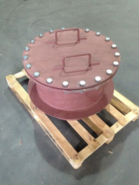 Люк-лаз герметический по серии 4.901-18 представляет собой стакан из трубы диаметром 600 мм с приваренным фланцем и опорным ребром. Комплектуется крышкой-заглушкой с ручками. Герметичность люка обеспечивается прокладкой из маслобензостойкой резины, установленной между фланцем и заглушкой.