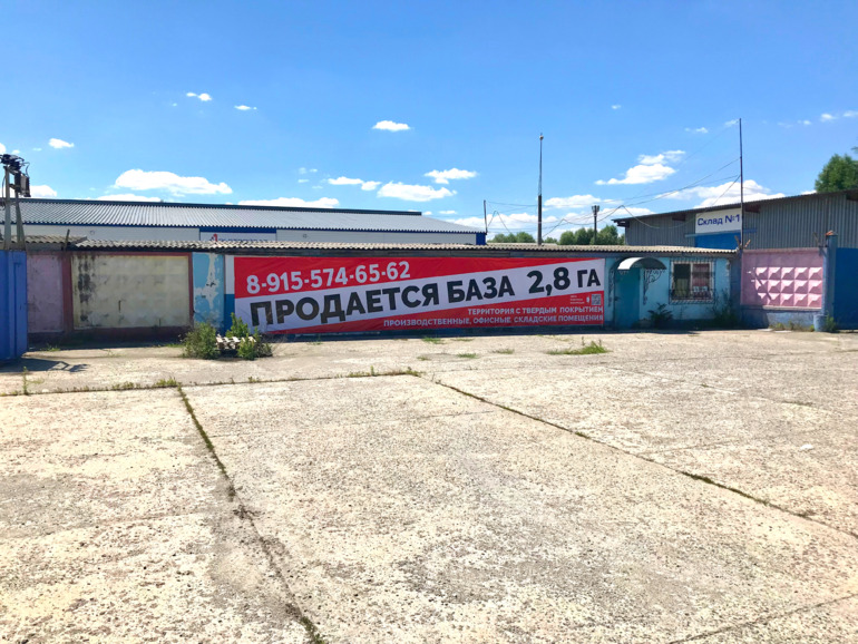 На территории участка расположены ЧЕТЫРЕ крытых складских помещения площадью от 271квм до 1172квм + помещение обслуживания клиентов и личного персонала, общей площадью 77 кв.м