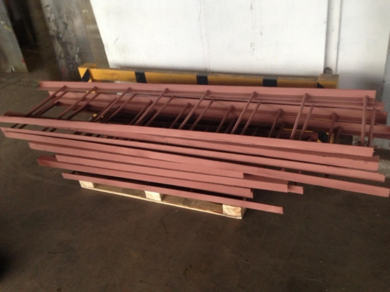 Стремянки изготавливаются из горячекатаного уголка 50мм и круглого стального прутка d 18мм. Стандартная антикоррозионная защита: два слоя масляной краски (ГОСТ 8292) по железному сурику МА-15.