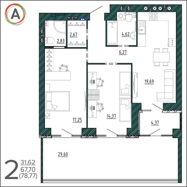 На первом этаже есть эксклюзивные варианты квартир с собственной приватной террасой для воплощения самых смелых дизайнерских решений.