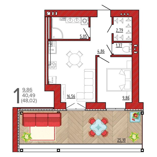 В квартире выполнена строительная отделка (стяжка пола, межкомнатные перегородки, все приборы учёта, лучевая горизонтальная разводка отопления в полу, биметаллические радиаторы, электрика до коридора, приборы учета, металлическая входная дверь)