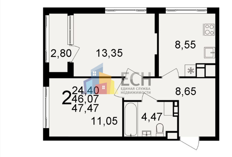 Общая площадь:47,5 м²