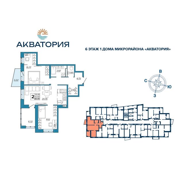 Для комфортной жизни в микрорайоне «Акватория» всё предусмотрено в шаговой доступности. Первый этаж - коммерческая инфраструктура. Спустится в магазин или за кафе можно прямо в тапочках.