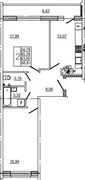 Общая площадь:66,7 м²