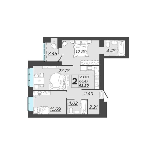 Общая площадь:62,2 м²