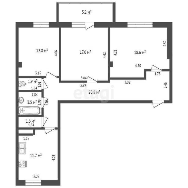 Продается классная 3-комнатная квартире в центре города. Новый СДАННЫЙ дом. Общая площадь квартира 85,63кв.м. Жилая 46,88 кв.м. Комнаты 18,25, 16,59, 12,03 кв.м. Комнаты вс изолированные. Кухня 11.14 кв.м. Санузел раздельный. Кладовка. Балкон. Квартира в черновой отделке. Электричество заведено в квартиру. В доме своя котельня, на радиаторах установлены регуляторы температуры, счетчики тепла установлены в подсобном помещении на этаже. В районе развитая инфраструктура: все необходимое есть в шаговой доступности.