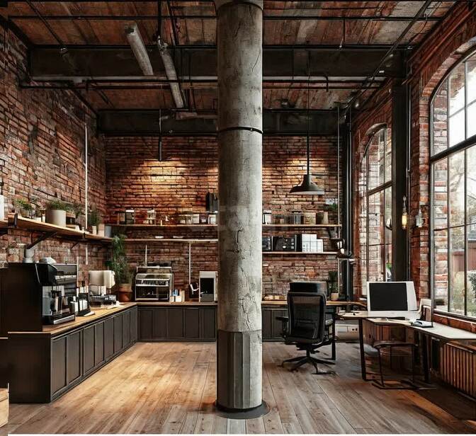 Первые фото сгенерированы при помощи нейросети, вариант дизайнерского ремонта для кафе или коворкинг центра