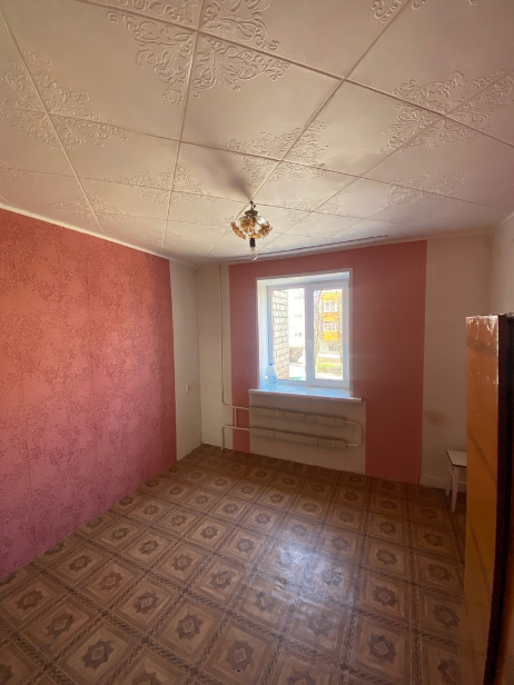 Комната требует косметического ремонта. Окно пластиковое. Радиаторы отопления не менялись. Комната светлая и теплая. Не угловая. Окно выходит во двор на парковку. Сан. узел на две комнаты. Кухня общая.