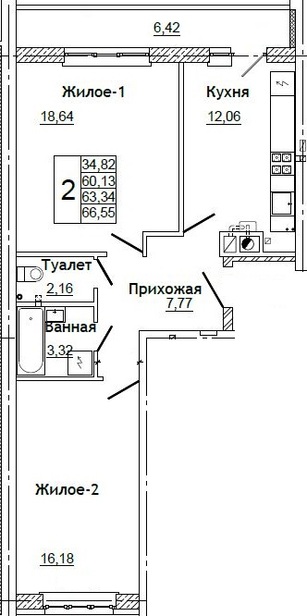 Общая площадь:66,6 м²