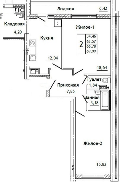 Жилая площадь:34,5 м²
