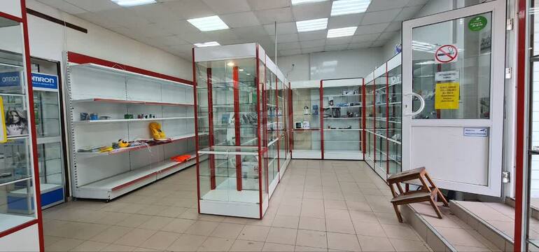Помещение ранее использовалось как аптека и полностью укомплектовано: остаются стеллажи, вывеска и техника, что сократит затраты на запуск бизнеса.