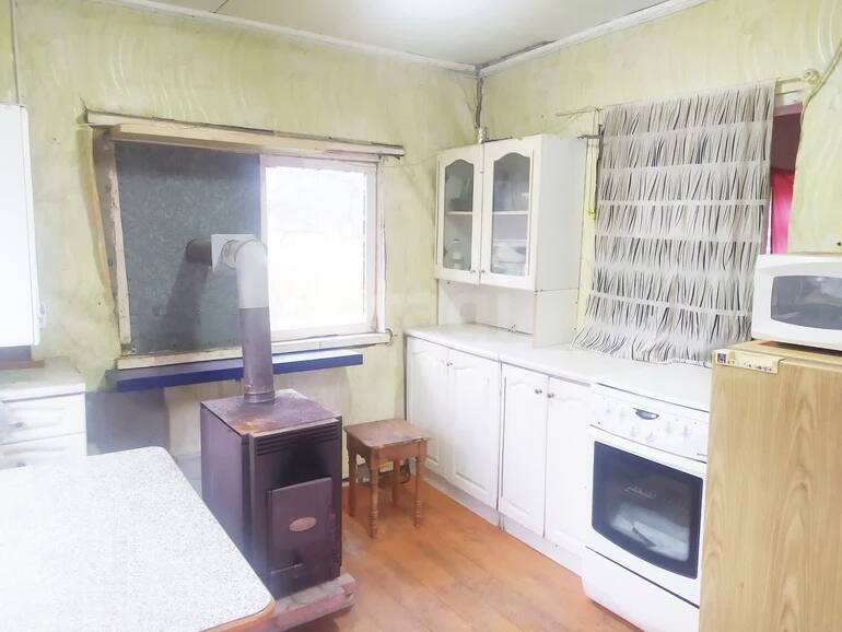 На 1 этаже: комната, кухня - веранда. На 2 этаже: две, просторные спальни. Стены - кирпич-дерево. Фундамент ж/б блоки. Крыша — шифер Внутренняя отделка - обои, полы доска. Вся мебель и техника остается. (холодильник, плита,микроволновка, обогреватели.) Электричество 220.