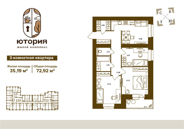 Общая площадь:72,9 м²