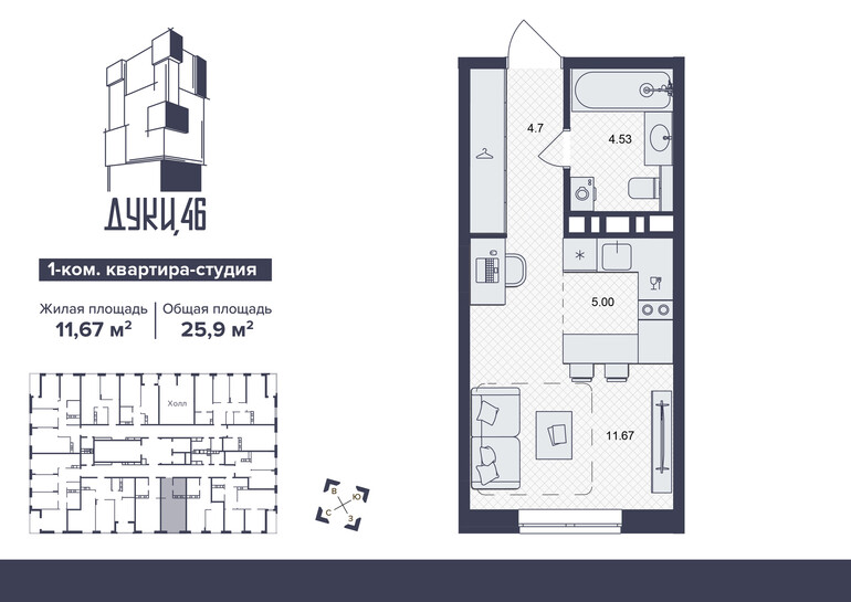 Общая площадь:25,9 м²