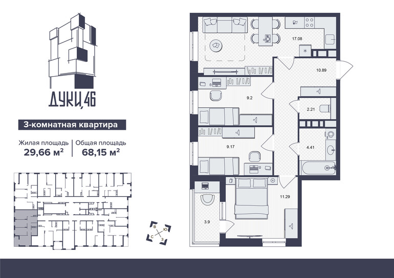 ЖК «Дуки, 46» - место, где каждый сможет выбрать свою идеальную квартиру. Наши лучшие архитекторы продумали для вас современные планировочные решения, где каждый квадратный метр будет использован с пользой и по назначению. Мы рады предложить вам квартиры с панорамными видами, которые открывают невероятные горизонты и наполняют каждый день вдохновением. Каждая квартира спроектирована с учетом максимального использования пространства и света.