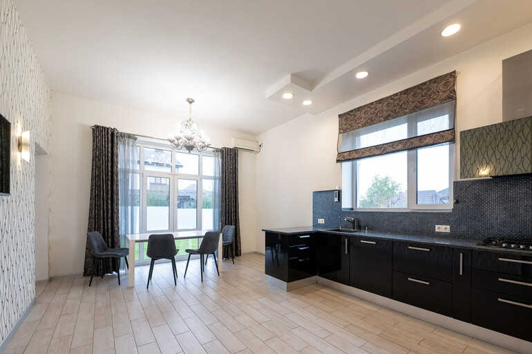 Арт. 110485685 Комплекс строений, состоящий из жилого и гостевого домов На участке (12 сот.) выполнено благоустройство, организована большая парковочная зона, под навесом место для хранения сезонного транспортаЖилой дом S 286,9 кв.м.Дом был построен в 2014 году в соответствии с высокими стандартами и современными требованиями комфорта.Помимо прекрасных внешних данных, у дома очень удобная внутренняя организация и современный интерьер.На I этаже дома размещены:• Просторная кухня-столовая (25,1 кв.м) - зона приготовления оснащена эргономичной кухней со столешницей из натурального гранита и оборудована современной премиальной техникой. Столовая зона расположена у панорамного окна, наполняющего помещение светом и приятной атмосферой загородной жизни• Терраса с выходом из кухни-столовой позволит наслаждаться загородным спокойствием за завтраком или семейным ужином• Гостиная комната поражает своим простором, широкие оконные проемы, высокие потолки 3,3 м, современный дизайн в светлых тонах• Кабинет, где в уединенной обстановке можно проводить рабочие встречи в онлайн или офлайн формате.• Гостевой санузел оборудован душевойВысота потолка I этажа 3,3 мII этаж дома – зона спален.В левом крыле дома расположена просторная главная спальня с выходом на террасу.В правом крыле - детские комнаты и ванная комнатаВысота потолка на II этаже 3,2 мЦоколь оборудован в качестве спортивного зала, здесь же финская сауна и доп.санузел. Так же в цокольном этаже организована огромная гардеробная и прачечная зона. Высота потолка цок.этажа 2,9 мДом строился и обустраивался исключительно из качественных материалов:фундамент дома - блоки ФБС, стены - пеноблок с облицовкой кирпичом, утеплением и декоративной фасадной штукатуркой, перекрытия ж/б; все входные двери премиального немецкого производителя Hormann,межкомнатные перегородки – полнотелый кирпич, полы первого этажа – итальянский лаппатированный керамогранит с системой теплого пола, полы второго этажа - паркетная дубовая доска, ступени лестни.
