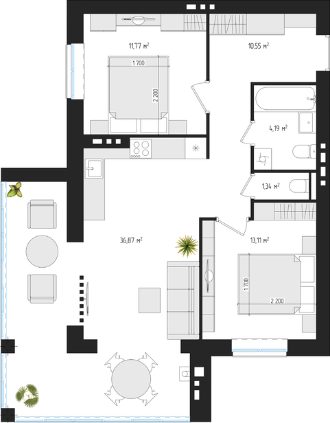 Кухня:36,9 м²