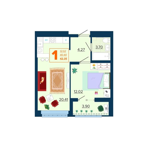 Общая площадь:42,4 м²