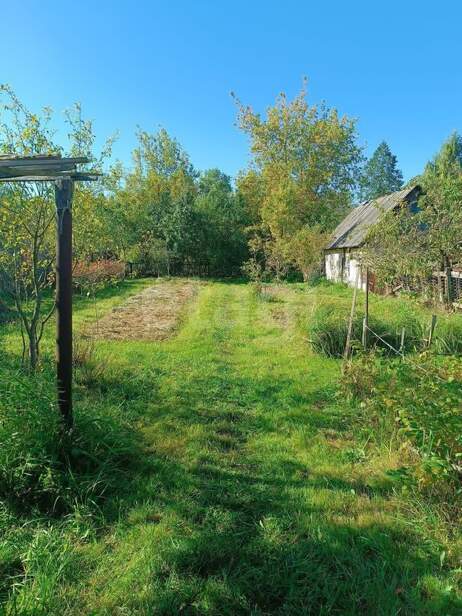 Участок разработан, высажены плодовые деревья и кустарники. За участком находится пруд.