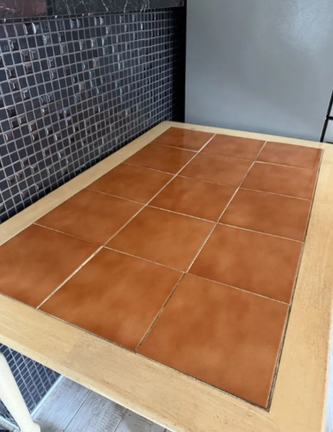 Стол кухонный , деревянный , столешница из плитки Цвет: мокрый песок Стол в нормальном состоянии , имеется трещина на одной плитке!