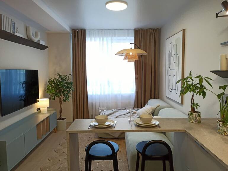 Ремонт выполнен из качественных материалов, завози мебель и живи!