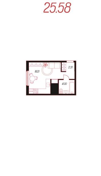 Общая площадь:25,6 м²
