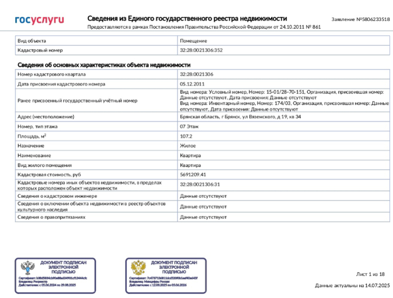 Характеристики объекта