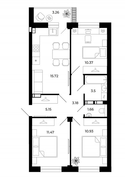 Кухня:15,7 м²