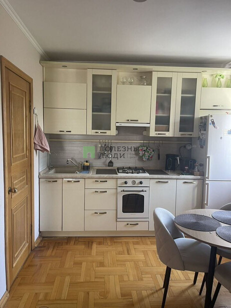 Хороший кухонный гарнитур со встроенной бытовой техникой.