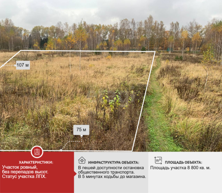 Подъезд к участку отсутствует, пройти к нему можно со стороны остановки.