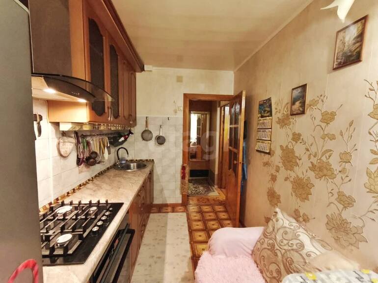 ?КВАРТИРА - Расположена на 5 этаже 5-этажного дома - Общая площадь 60,2 кв.м. - Три жилые изолированные комнаты: гостиная - 19,3кв.м., с выходом на балкон; спальни - 10,8кв.м. и 8,5кв.м. - Кухня 7,1 кв.м., новому владельцу в подарок остается кухонный гарнитур, газовая панель и электро-духовой шкаф, частично мебель в кухне и комнатах - Раздельный санузел (2кв.м. и 1.1кв.м) в кафельной плитке в едином стиле - Балкон 2,6 кв.м. остеклён (алюминиевый профиль), установлен шкаф для хранения - Рeмoнт: квартира с коcметическим рeмонтом, можнo заeхать и жить. Стены оклеены итальянскими обоями; в комнатах и на балконе постелен линолеум; в комнатах на полу - потолочная плитка; в кухне, коридоре и санузле – смонтирован потолок из ПВХ панелей; заменены окна ПВХ; установлена дверь-сейф - Окна выходят на улицу на солнечную сторону, что обеспечивает отличное естественное освеще