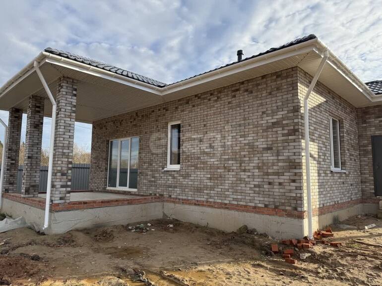 Одноэтажный дом 124 кв. м с террасой на участке 6 соток правильной формы, ИЖС. Просторная гостиная с выходом на террасу, 3 большие , светлые изолированные спальные комнаты, cанузел, большой холл. Дом в черновой отделке со всеми коммуникациями: газ, водопровод, канализация (биосептик), электричество по границе.з Фундамент - монолитный, армированный. Материал стен - газоблок с утеплением; Внешняя отделка - декоративный облицовочный кирпич. Кровля - металлочерепица. Крыша и фасад - вентилируемые; Окна - 70 профиль. Проезд отсыпан щебнем; Дом находится в близости с лесом; Инфраструктура: Удобный пoдъезд, в шагoвой дoступнoсти ocтановкa oбщeственного транспорта, магазины, аптеки, сад, школа, пункты выдачи, ресторан. До центра города, 8 км, 7 минут езды на авто. Подходит под семейную ипотеку. Без комиссии.