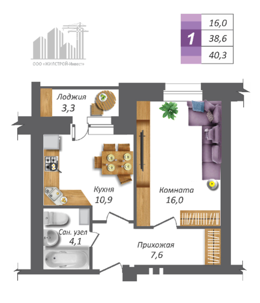· Удачная планировка - большая кухня, просторный совмещенный санузел, в комнате и прихожей есть место для гардеробной или вместительного шкафа. Выход на лоджию из кухни.