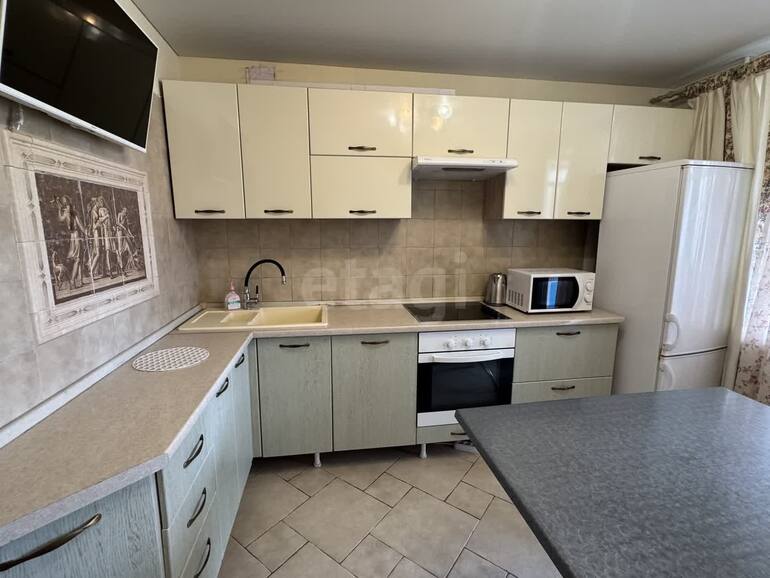 Квартира светлая и уютная , вид из окна во двор на парковку и детскую площадку Полностью укомплектована, имеется мебель и техника, представленные на фото, что позволит вам сразу же комфортно обустроиться. Из техники холодильник , микроволновая печь , духовой шкаф , 2 телевизора на кухне и в комнате , стиральная машина , утюг Из кухни и комнаты вы можете выйти на большую застекленную 9 метровую лоджию В квартире много мест для хранения вещей , просторная гардеробная , в комнате большой шкаф купе , комод Закрытый двор, с камерами видеонаблюдения.
