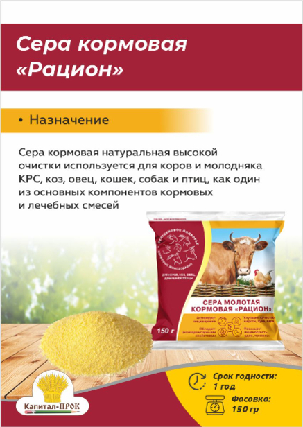 Не упустите возможность обеспечить своим питомцам и скоту здоровье и активность с помощью нашей кормовой серы! Заказывайте уже сегодня!