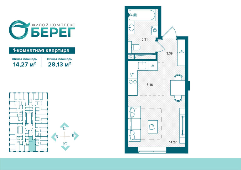 Общая площадь:28,1 м²