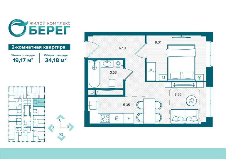 Общая площадь:34,2 м²