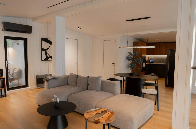 Площадь каждого коттеджа — 80 м?, продуманная планировка включает 5 комфортных спален, что позволяет разместиться большой группе гостей.